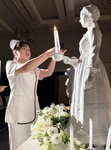 ナースキャップをいただき、ナイチンゲールの灯を受け継ぐことで、 「人を支える職業」としての責任と覚悟を胸に刻む儀式です。